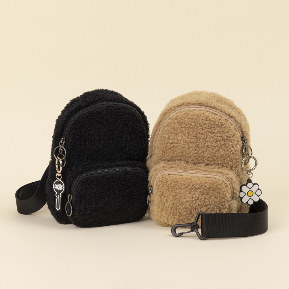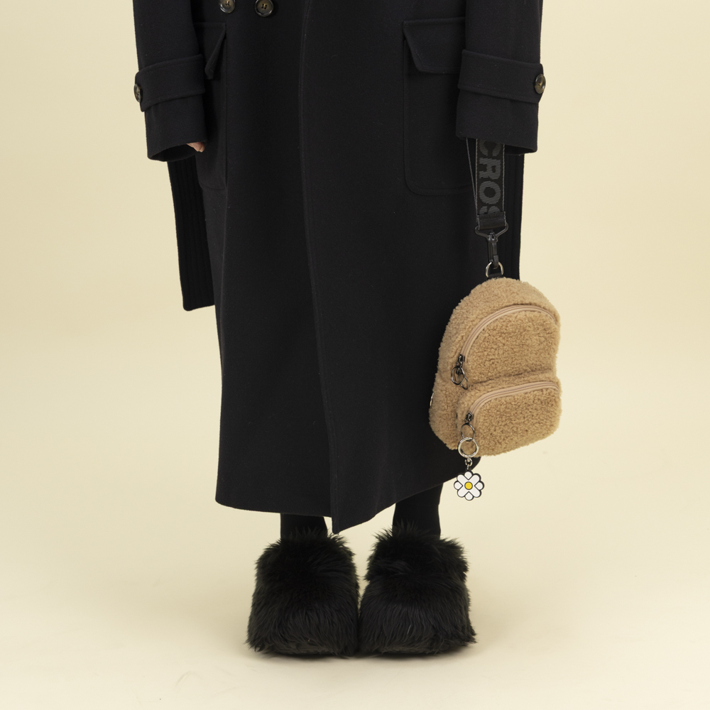 2025FW 시즌, 수소문 끝에 찾은 국내 아동 의류용 텀블 원단 공장에 직접 의뢰해 제작한 부드럽고 풍성하며 냄새 없는 프리미엄 페이크 퍼리 소재로 제작한 조이 슬링백 미니 퍼리 입니다.